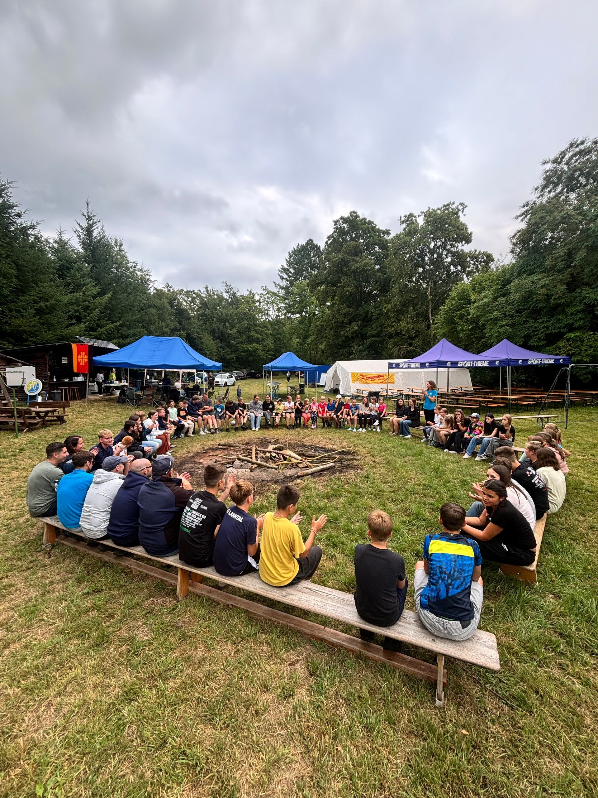 Bereits zum 56. Mal hat der Turnverein „Vorwärts“ Villmar, dieses Jahr ausnahmsweise in der vierten Ferienwoche, sein Nachwuchszeltlager „Auf der Spatzenburg“ veranstaltet. Schon beim Beginn am Sonntag Nachmittag stand den Kindern und Jugendlichen die Vorfreude ins Gesicht geschrieben. Das konnte auch das eher durchwachsene und alles andere als sommertypische Wetter nicht ändern. Nach dem ersten Abendessen und dem Kennenlernen stand schon das erste Mal Action auf dem Plan: Die Nachtwanderung durch den Langhecker Wald ist sowohl für die Kinder als auch für die Betreuer ein Highlight am ersten Abend. Montags stand dann das Walddiplom mit Jäger Thomas Muth an. Er gab viele interessante Informationen zum Thema Natur, Wald und deren Bewohner. Die Zeltlager-Lokalität liegt nämlich mitten im Wald und hat keinen Strom- und Wasseranschluss. Da ist es logisch, dass im Verlauf auch etwas über die Natur referiert wird, denn genau diesen besonderen Ort schätzen die Teilnehmer*innen und das 25-köpfige Betreuerteam gleichermaßen. Den besonderen Charakter des Nachwuchszeltlagers haben Gabi Druck-Wagner (Vorsitzende Turngau Mittellahn), Andreas Hofmeister (MdL, CDU), der Erste Beigeordnete Jörg Sauer und Villmars Bürgermeisterin Alicia Bokler (beide SPD) bei ihren Besuchen hervorgehoben. Sie dankten dem BetreuerInnen-Team rund um Lagerleiter Michael Rosam, die den Kindern und Jugendlichen eine Woche voller toller Erlebnisse, abseits von Fernsehen, Smartphone oder Spielconsole ermöglicht haben. Ein weiterer Programmpunkt, bei dem keine technischen Geräte benötigt wurden, war der Besuch des Taunus-Wunderlandes in Wiesbaden. Bei Achterbahnen und weiteren atemberaubenden Fahrgeschäften kam auch der Spaß bei den BetreuerInnen nicht zu kurz. Mittwochs war dann wieder viel Kreativität beim Bau von Nistkästen für den Garten zu Hause gefragt. Da natürlich auch der sportliche Aspekt nicht zu kurz kommen sollte, stand am Donnerstag die Fahrt ins Weilburger Oberlahnbad an. Die traditionelle Wanderung ins Freibad nach Wolfenhausen musste bei Regen und kühlen Temperaturen leider ausfallen. Auch die Kanu-Tour musste leider wegen schlechtem Wetter abgesagt werden, was das Betreuer-Team aber nicht davon abhielt, tolle Bastel-Aktionen und Spiele wie das „Catch up the ball-Spiel“ mitten im Wald, vorzubereiten. Auch diese tollen Erlebnisse, genauso wie der Kino-Abend und die Sportolympiade, die mit tollen Preisen belohnt wurden, werden den Kindern wohl noch lange in Erinnerung bleiben. Eine Woche voller Spiel, Spaß und viel frischer Lift ging am Sonntag morgen nach einem aufregenden Gala-Abend zu Ende.