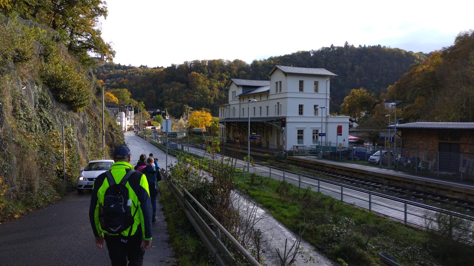 Am Sonntag, 29.10. machte sich eine kleine Gruppe Wanderer auf den Weg von Limburg nach Balduinstein. Wegen geänderter Bahnabfahrtszeiten wurde kurzerhand die Wanderung entgegen der ursprünglichen Planung umgekehrt gelaufen. Ab dem Limburger Bahnhof führte der Lahnwanderweg über den Schafsberg, durch die Wiesen mit Blick auf die Diezer JVA zum Diezer Hain. Dort machten wir eine gemütliche Rast, um dann weiter durch die Altstadt und anschließend steil nach oben aus Diez raus, auf einem schönen Waldweg Richtung Fachingen zu wandern. Hier konnten wir die Tunnelarbeiten der Bahn begutachten, die derzeit zu vielen Störungen auf der Strecke führen. Nach einer kleinen Rast an der Franzosenlay mit Blick über das Lahntal, ging es die letzten 2 km bergab nach Balduinstein. Das Wetter war entgegen der Vorhersage recht gut und wir konnten die schönen Ausblicke und den buntgefärbten Herbstwald genießen. Auch die Rückfahrt funktionierte ohne Probleme und so hatten wir uns die Einkehr mit gutem Essen beim heimischen Griechen verdient. Alle waren sich einig, dass es ein schöner Ausflug war und sind beim nächsten Mal wieder dabei .